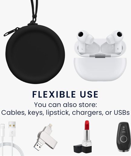 Headphones Pouch Case Compatible with in-Ear Headphones – Silicone 7 x 7 cm – Black