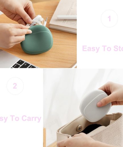 4 PCS Headphone Organizer and Silicone Cable Ties, Silicone Pouch for Storing Earbuds/USB Flash Drive/Keys/Mini Lipstick Cord Winder Holder Keeper Manager Management for Home or Workplace