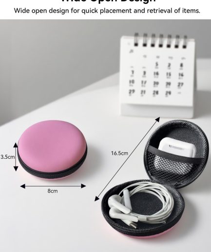 - VERSATILE STORAGE – The small case is round shape gives it a chic and trendy look. Not only fit earbuds but can also accommodate small items like ear tips, charging cables, audio cables, SD cards, coins, USB flash drive